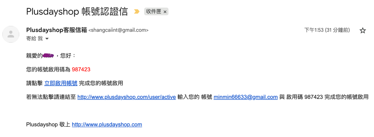 步驟2.到剛剛註冊輸入的emil收取認證信 ,可點選信件內「立即啟用帳號」,或是官網輸入啟動碼,帳號即可啟用